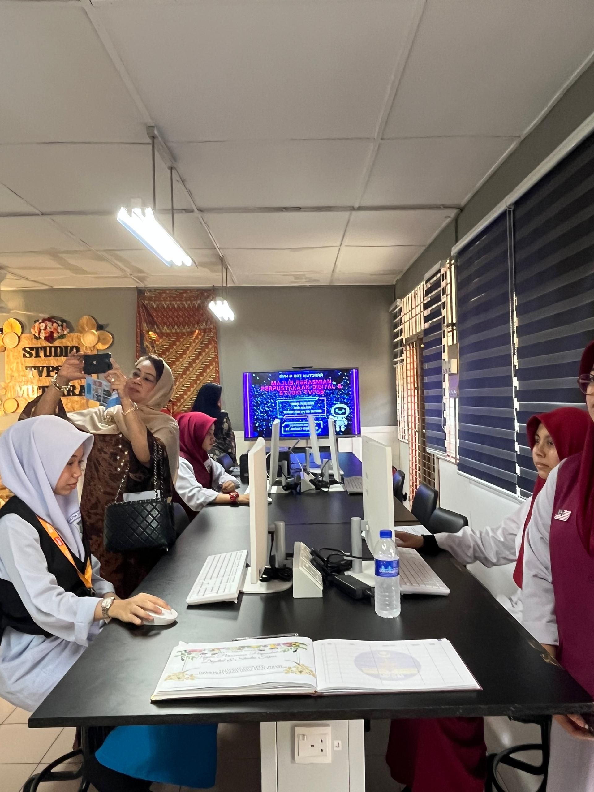 SI Penang fully sponsored brand new items such as 5 desktop computers, 1 brand new 65" interactive smartboard, 1 set of video light, 1 set of studio soft box, 1 unit of air conditioner and 1 DSLR camera.
