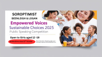 The South East Asia Pacific competition is open to girls who are aged 12 to 19. The Queensland heat of this competition is open to girls who may enter as an individual or schools may send a maximum of two competitors per category to the Soroptimist Qld Heat. Nominations and age group category is to be received by the deadline of 10th of October 2025.